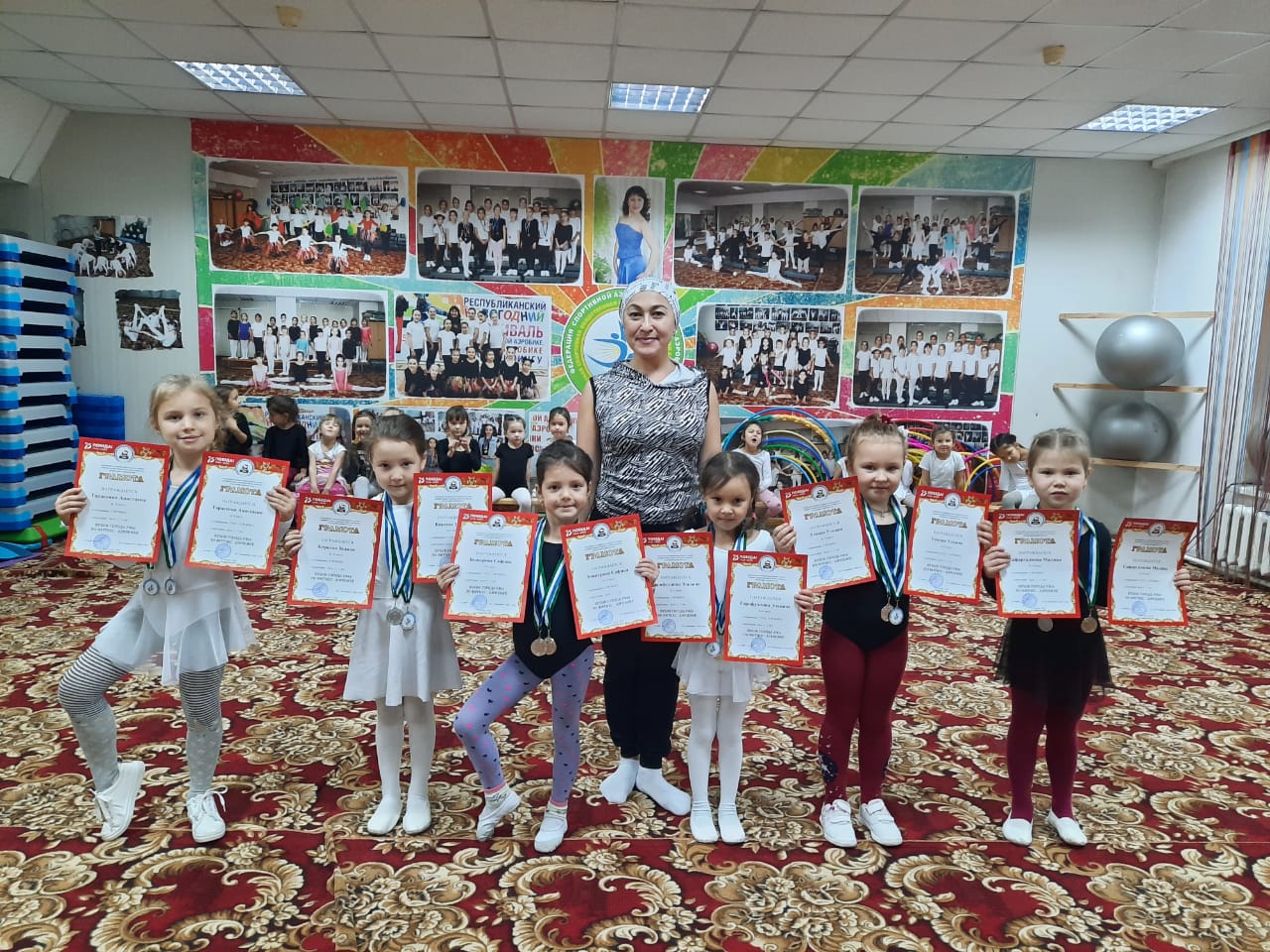 По итогам 5-7лет заняли два 2х места по аэробике и степ-аэробике, и возрастные категории 8-10лет по Номинациям аэробика, степ - аэробика и степ-аэробика петит заняли два 3их места.