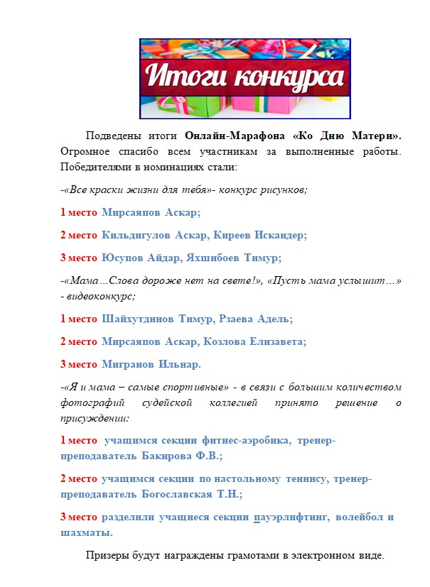 Подведены итоги онлайн марафона ко дню Матери