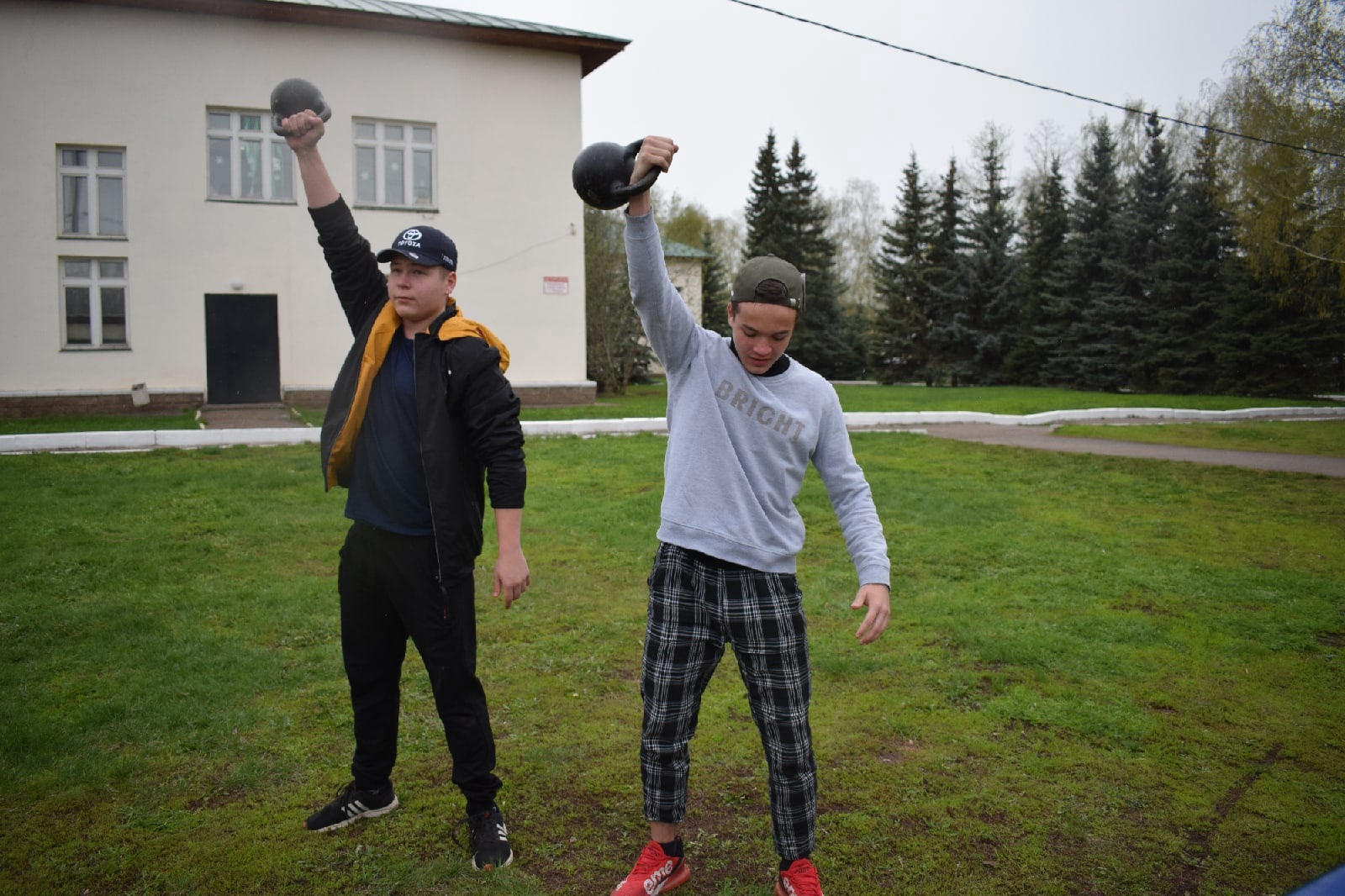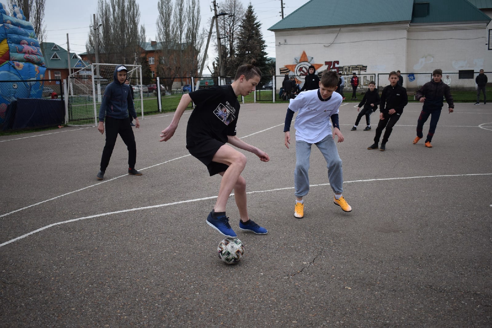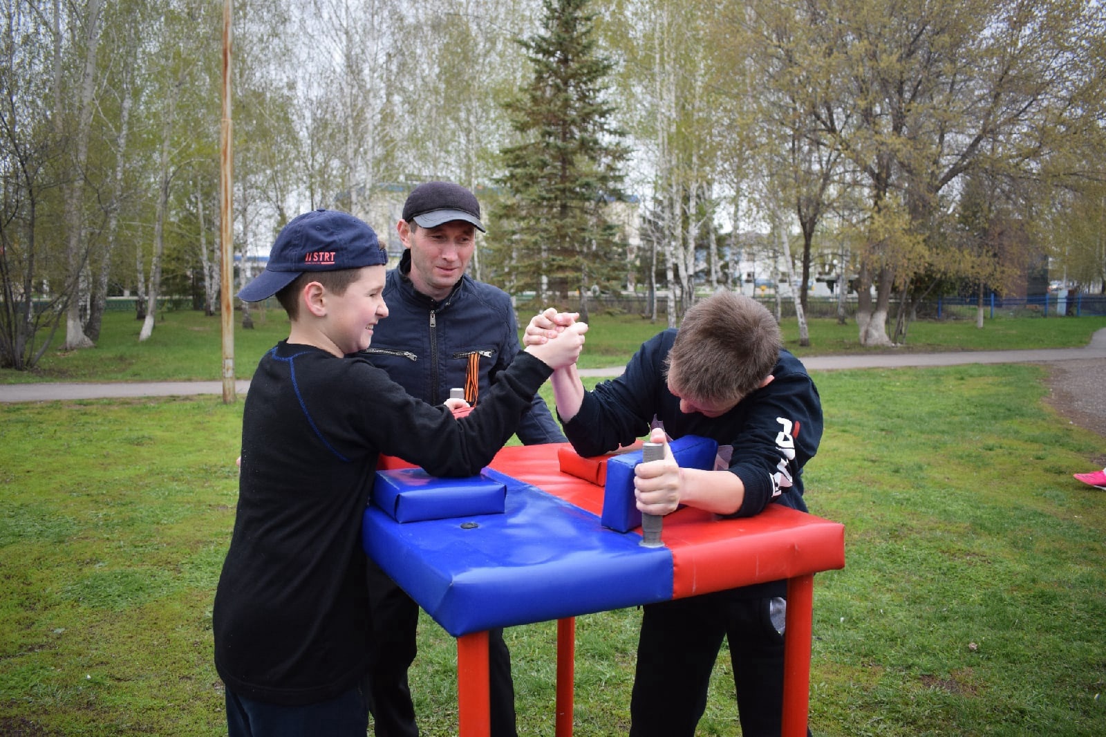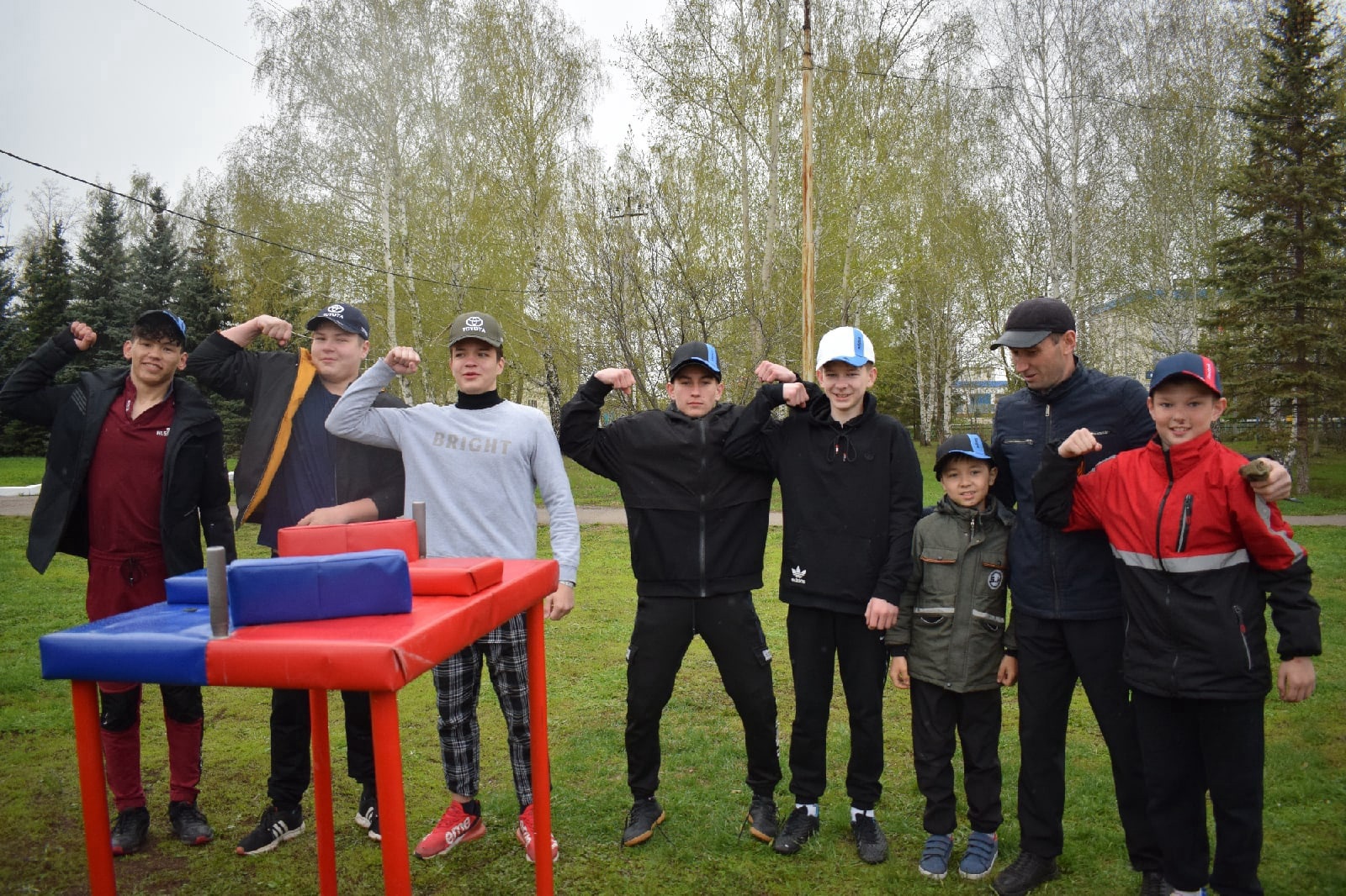 Все эти мероприятия проходили на свежем воздухе, в частности соревнования по мини-футболу на спортивной площадке за районным дворцом культуры и параллельно гиревой спорт с армспортом.