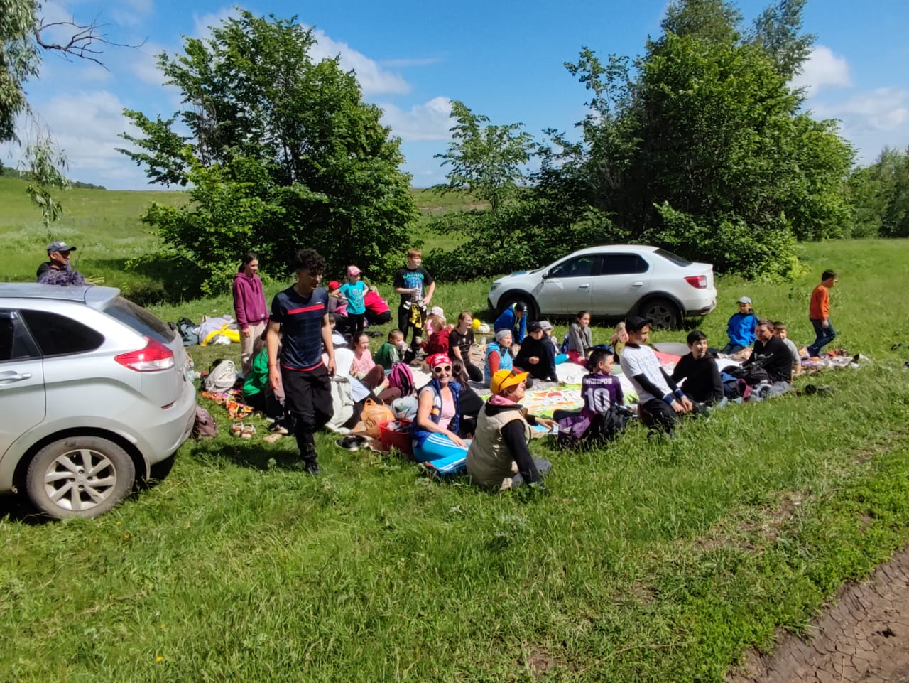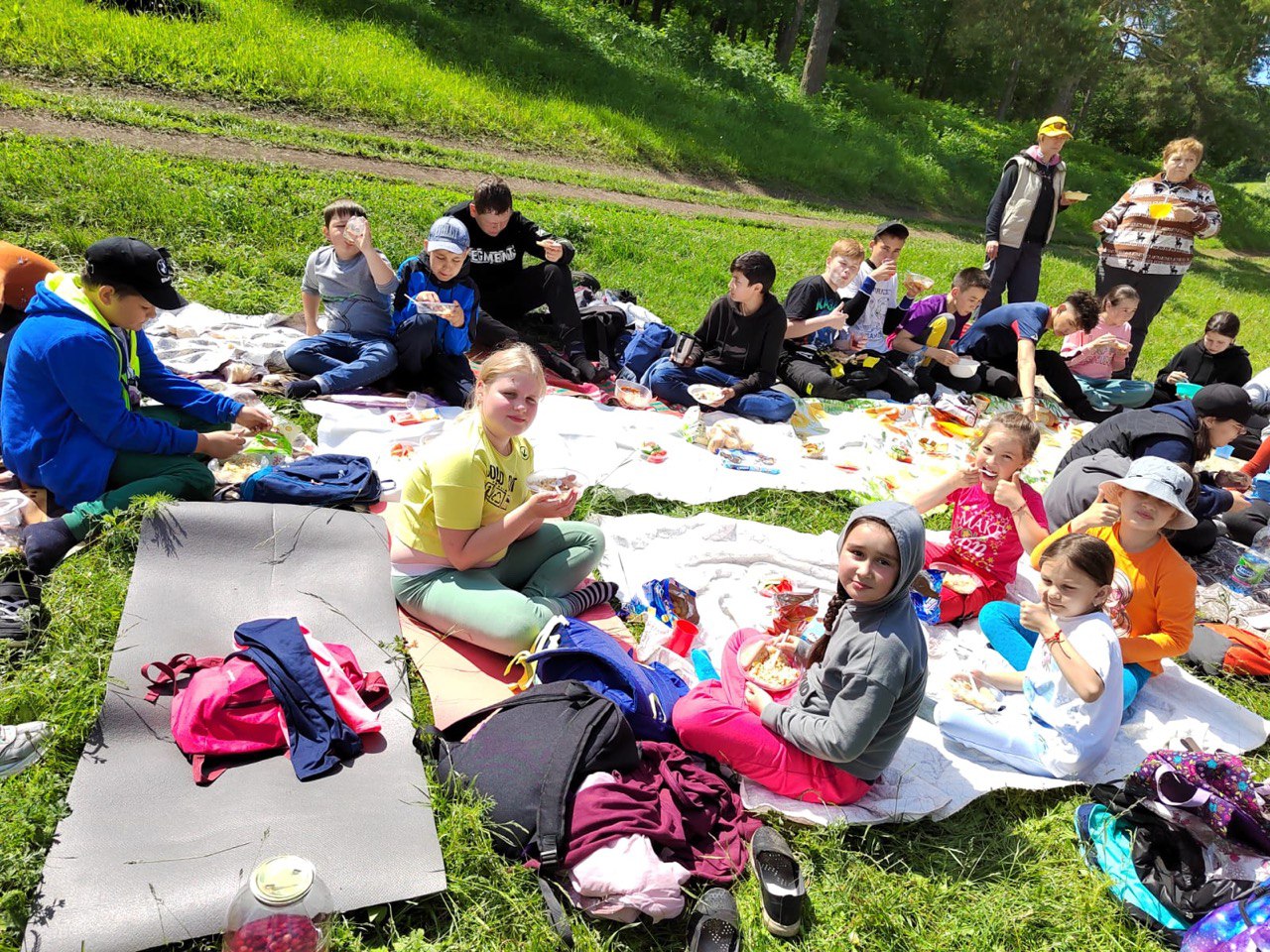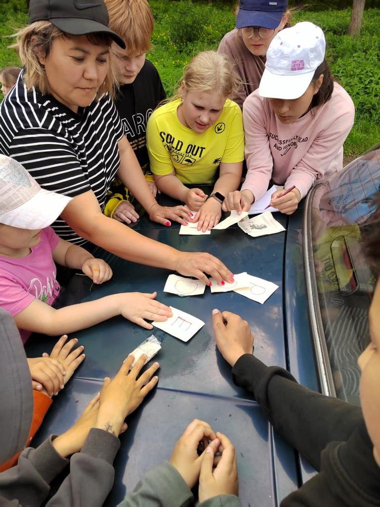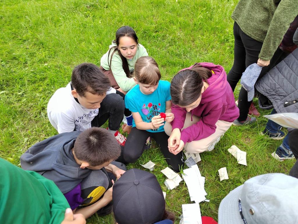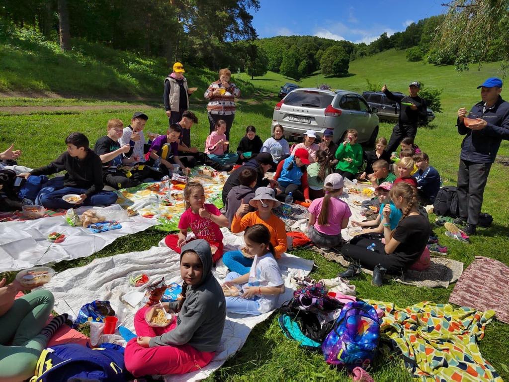Уже у стен спортшколы ребята разбились на две команды, получили задания квеста и отправились пешком по своим маршрутам, выполняя задания до Янаульских гор, где их ждал вкусный обед.
