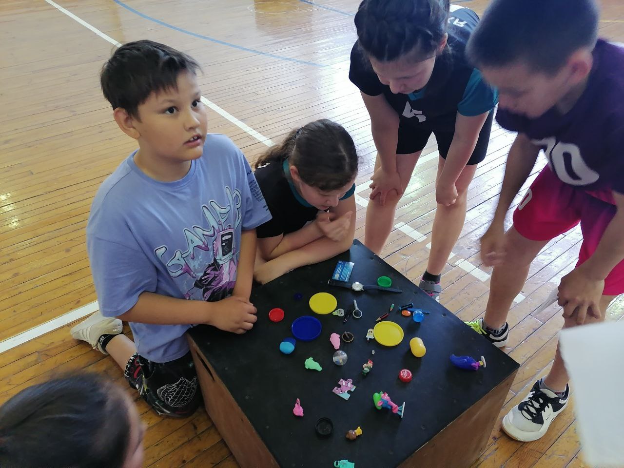 После чего тренеры-преподаватели организовали квест-игру "Школа батыров". Все дети были разделены на 9 команд, где каждая команда должна пройти по 9 станциям.