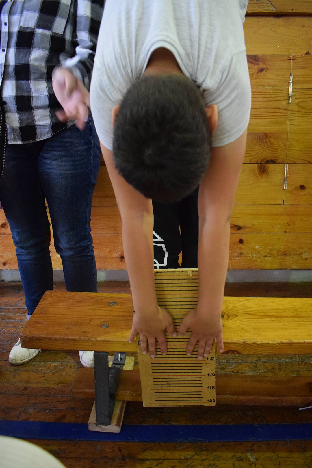 В программу спортивного мероприятия вошли наклон вперед из положения стоя на гимнастической скамье, поднимание туловища из положения лежа на спине, прыжок в длину с места толчком двумя ногами, а также сгибание и разгибание рук в упоре лежа на полу.