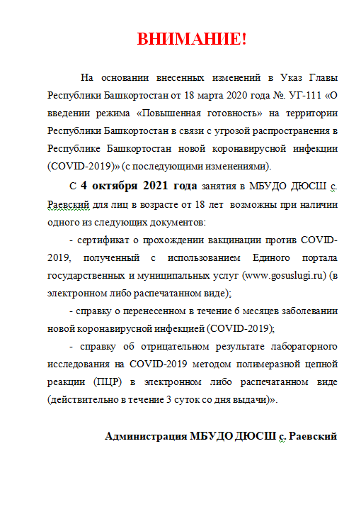 Программа развития МБУДО ДЮСШ с.Раевский МР Альшеевский район РБ на 2016-2020 г.г