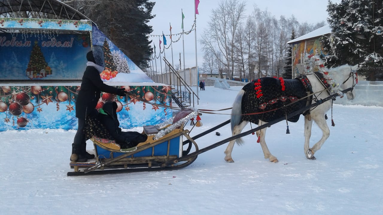 На Советской площади села Раевский начались рождественские катания на лошадях. С 3 по 7 января все желающие могут прийти на площадь и провести время с пользой для здоровья, весело покататься с горки, ну и конечно прокатиться в санях.