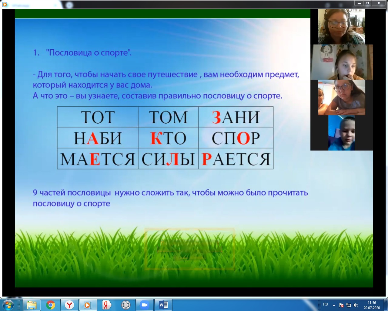 20 июля 2020г. вновь возобновил работу онлайн-лагерь ДЮСШ с. Раевский «Солнечная страна». Открытие онлайн-смены «Быть здоровым – круто!» проведено тренером-преподавателем по шахматам Радмилой Ильмировной Рзаевой.
