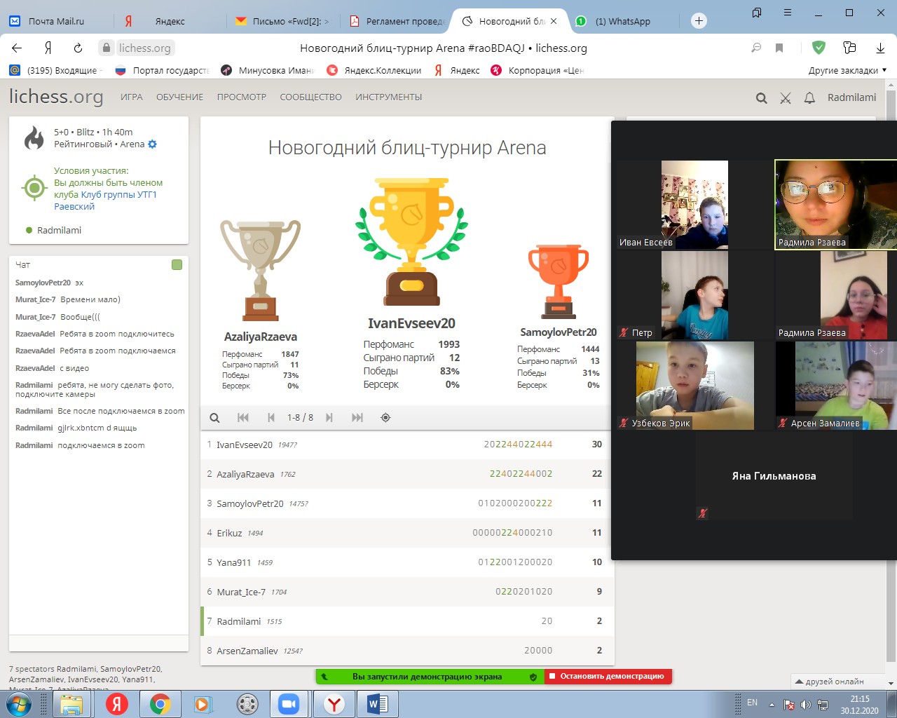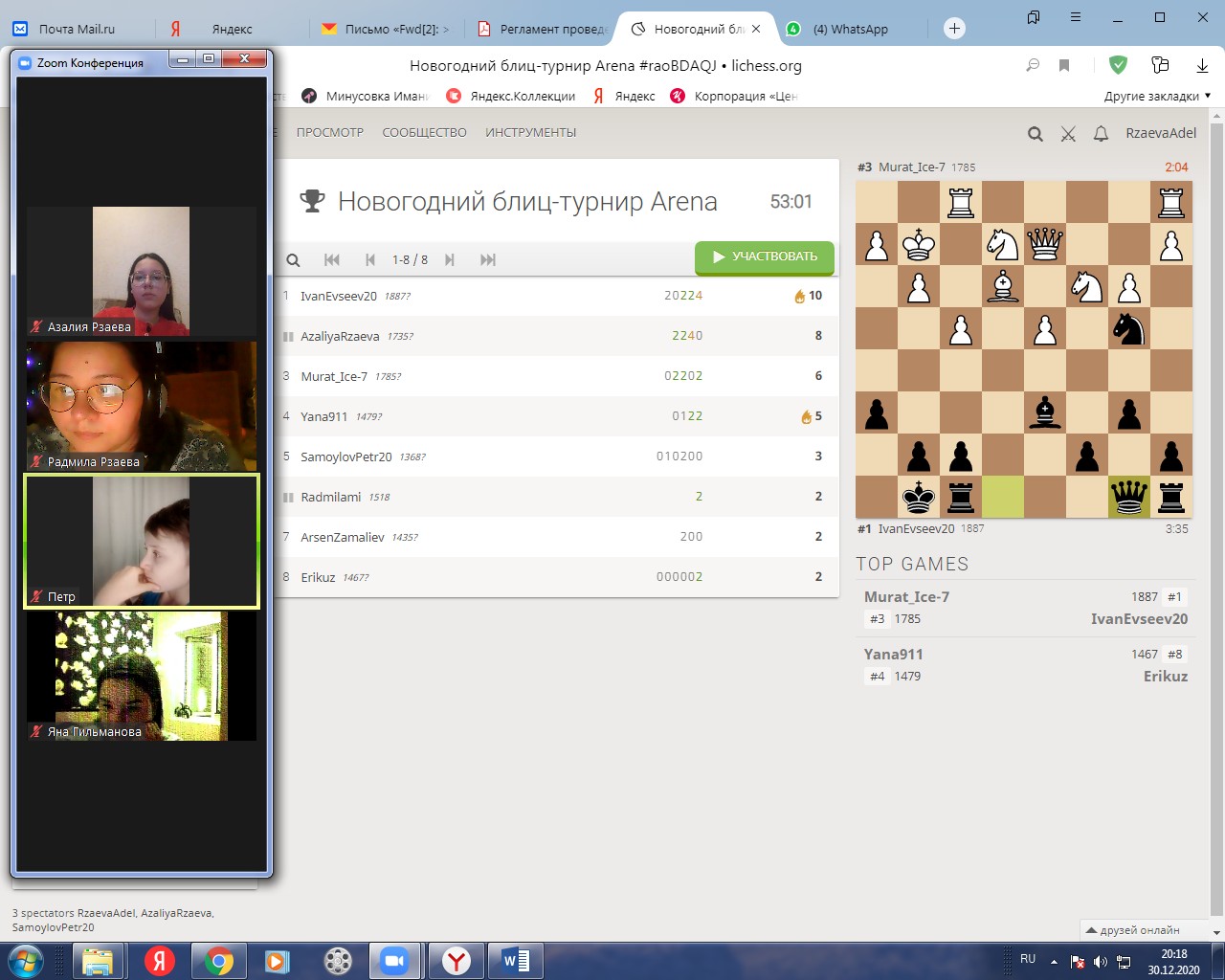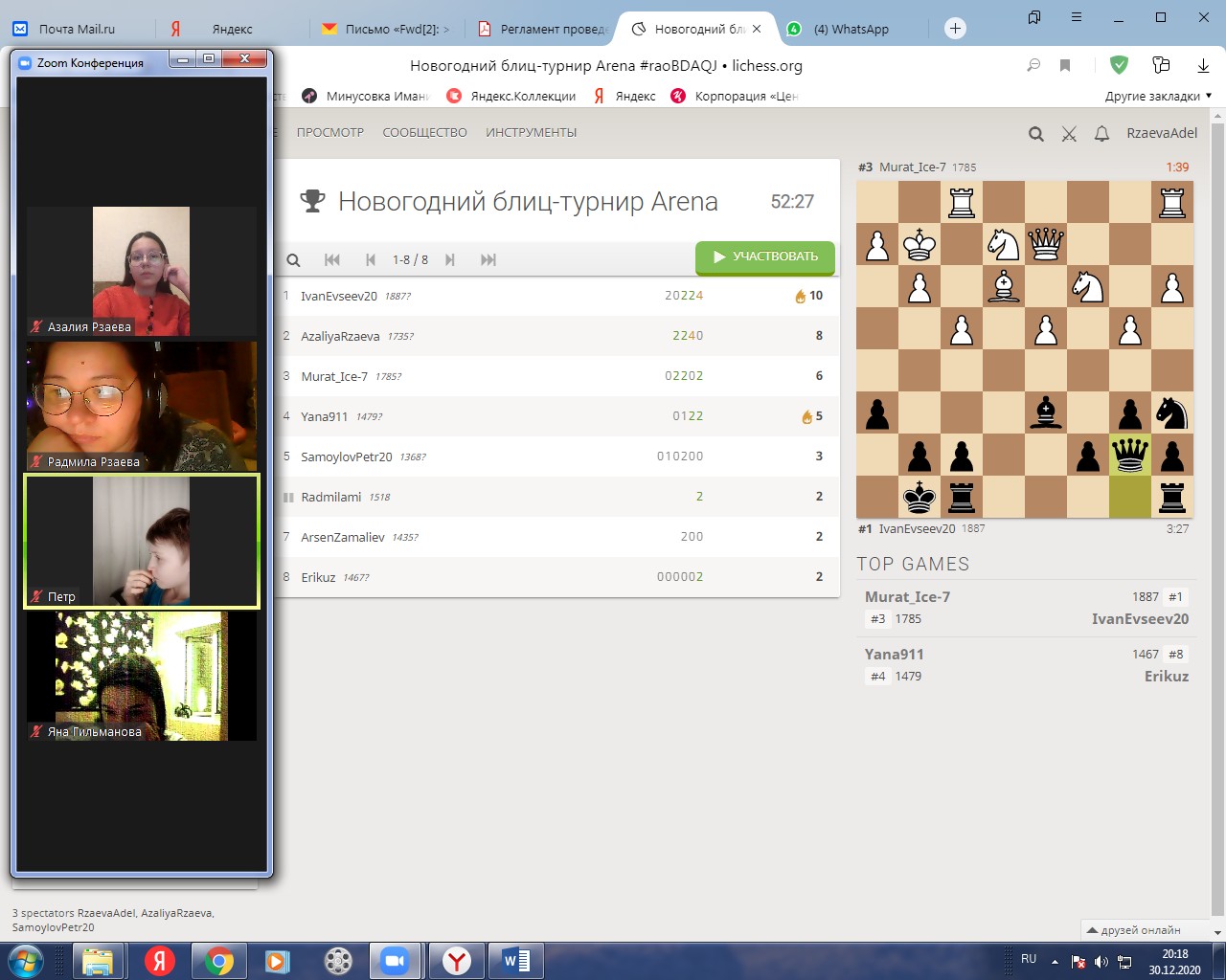 30 декабря 2020 года в преддверии празднования Нового года МБУДО ДЮСШ с. Раевский совместно с Комитетом по спорту и молодежной политике Альшеевского района провели онлайн блиц-турнир по шахматам.
