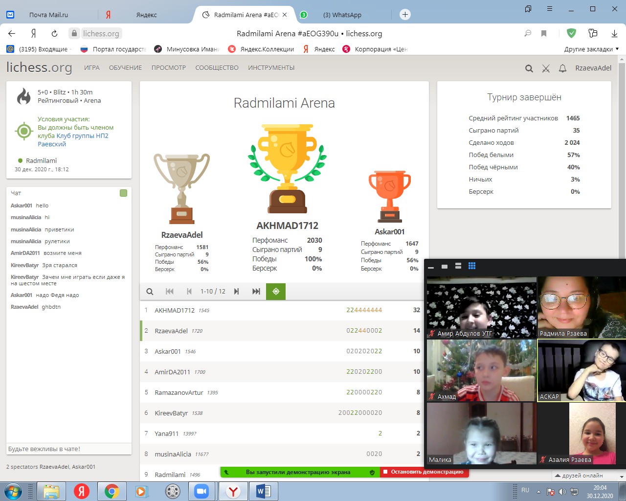 Турнир проходил на игровой платформе lichess.org в двух возрастных категориях. В турнире приняли участие 19 воспитанников шахматных групп ДЮСШ с. Раевский. Было сыграно более 60 партий и сделано более 4000 ходов.