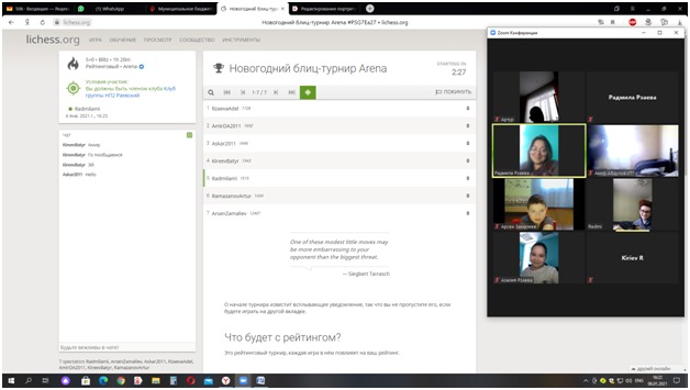 06 января 2021 года МБУДО ДЮСШ с. Раевский совместно с Комитетом по спорту и молодежной политике Альшеевского района провели ежегодный Новогодний блиц-турнир по шахматам.